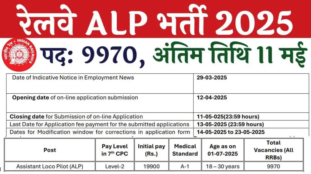 RRB ALP भर्ती 2025: 9970 पदों के लिए आवेदन प्रक्रिया शुरू