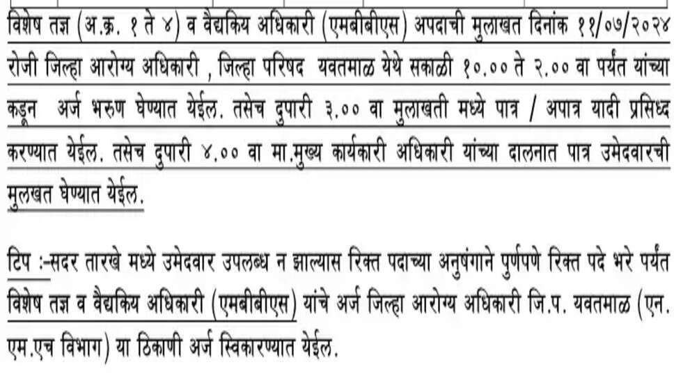 NHM , यवतमाल भर्ती 2024: ईएनटी सर्जन, मेडिकल ऑफिसर, एनेस्थेटिस्ट सहित 52 पदों के लिए वॉक-इन