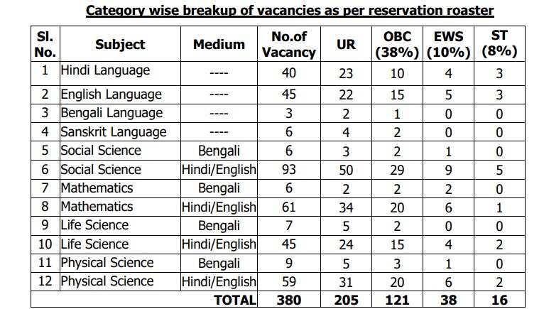 - अधिसूचना में विषयवार रिक्ति विवरण का उल्लेख किया गया है।