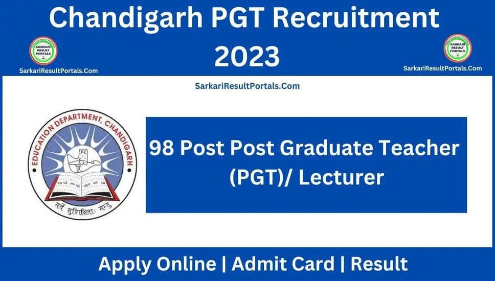 चंडीगढ़ शिक्षा विभाग भर्ती 2023: 98 लेक्चरर पदों के लिए ऑनलाइन आवेदन आमंत्रित