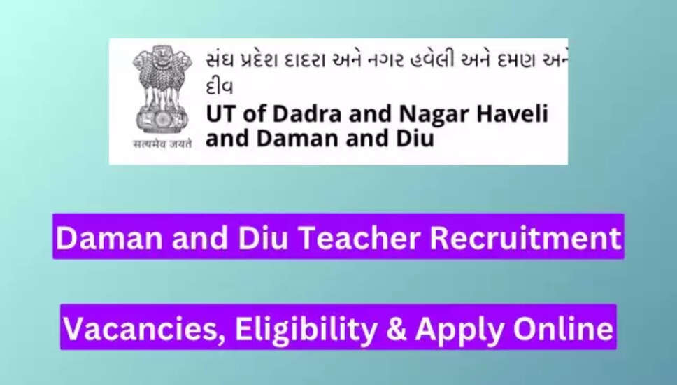 दादरा और नगर हवेली और दमन और दीव के यूटी प्रशासन ने शॉर्ट टर्म कॉन्ट्रैक्ट (एसटीसी) आधार पर प्राथमिक और उच्च प्राथमिक स्कूल शिक्षकों की भर्ती के लिए एक अधिसूचना जारी की है। पात्रता मानदंडों को पूरा करने वाले इच्छुक उम्मीदवार इन पदों के लिए आवेदन कर सकते हैं। रिक्तियों और आवेदन प्रक्रिया के बारे में अधिक जानने के लिए आगे पढ़ें।