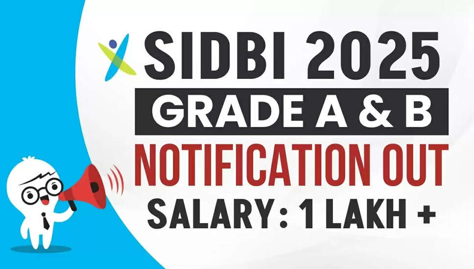 महत्वपूर्ण जानकारी: भारतीय लघु उद्योग विकास बैंक (SIDBI) ने हाल ही में सहायक प्रबंधक ग्रेड 'A' और प्रबंधक ग्रेड 'B' पदों के लिए आधिकारिक अधिसूचना जारी की है। इस भर्ती में कुल 76 पदों के लिए आवेदन आमंत्रित किए गए हैं। SIDBI बैंक ग्रेड A और B भर्ती 2025 के लिए ऑनलाइन आवेदन प्रक्रिया 14 जुलाई 2025 से शुरू हो चुकी है और उम्मीदवार 11 अगस्त 2025 तक आवेदन कर सकते हैं। उम्मीदवारों को SIDBI बैंक ग्रेड A और B भर्ती 2023 के लिए सभी विवरणों की जांच करनी चाहिए।
