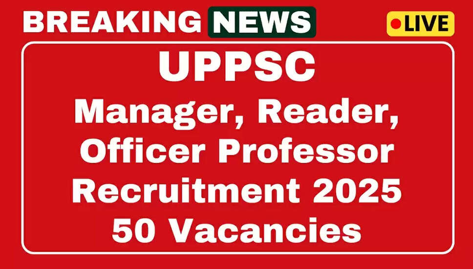महत्वपूर्ण जानकारी: उत्तर प्रदेश लोक सेवा आयोग (UPPSC) ने सहायक निदेशक, प्रिंसिपल, फाइलेरिया नियंत्रण अधिकारी, रीडर, व्याख्याता सहित विभिन्न पदों के लिए भर्ती अधिसूचना जारी की है। इस भर्ती में कुल 50 पदों के लिए आवेदन आमंत्रित किए गए हैं। UPPSC विभिन्न पदों के लिए सीधी भर्ती 2025 के लिए ऑनलाइन आवेदन प्रक्रिया 08 मई 2025 से शुरू हो चुकी है और उम्मीदवार 09 जून 2025 तक आवेदन कर सकते हैं। उम्मीदवारों को UPPSC विभिन्न पदों के लिए सीधी भर्ती 2025 की पूरी जानकारी नीचे दी गई है।