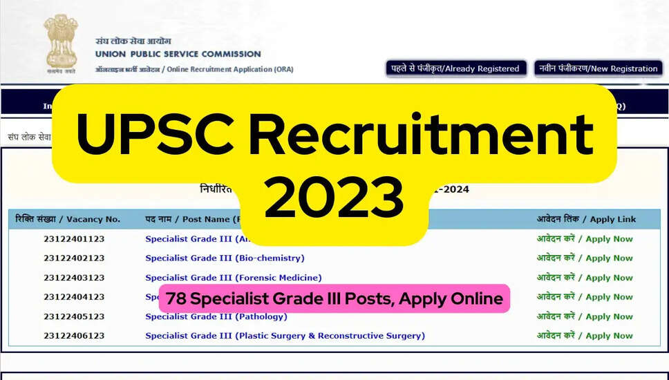 यूपीएससी ने खोले 78 स्पेशलिस्ट ग्रेड 3 पदों पर सीधी भर्ती के लिए आवेदन, 11 जनवरी तक करें आवेदन